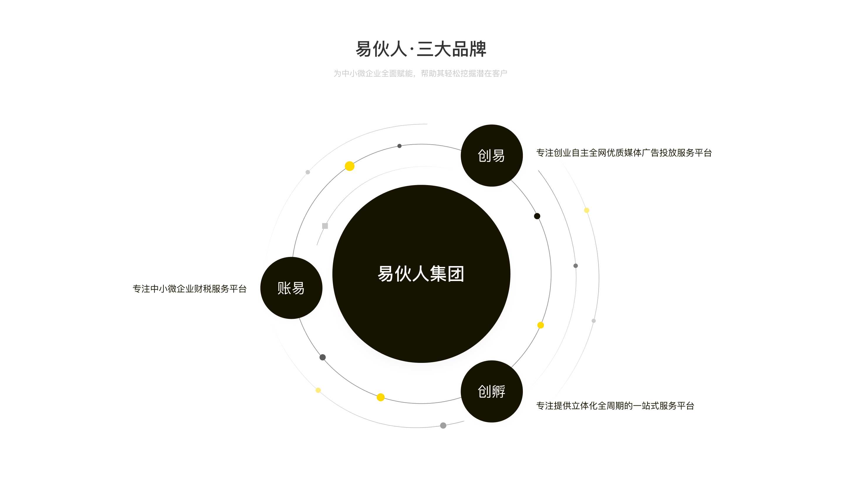 集團旗下三?業務品牌:創易、賬易、創孵,整體業務涵蓋互聯??告、?商財稅、企業云服務、IT研發、創業企服、項目投資等主流板塊,集團總部位于廣西南寧市,業務覆蓋地域桂、瓊、黔、陜、青、遼等地